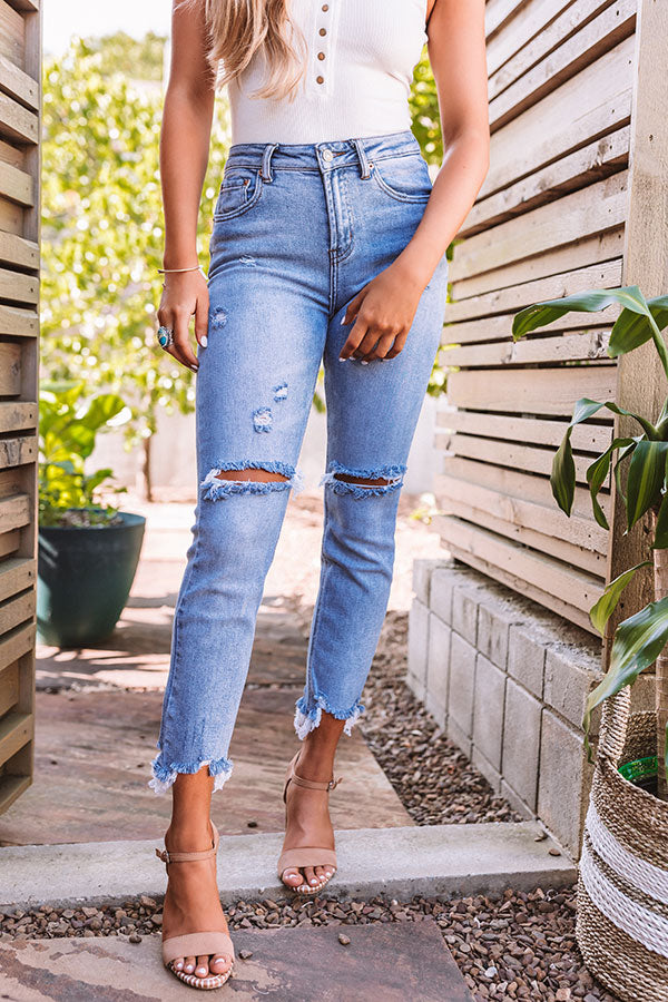 Life is more than just fitting into your jeans, but we believe you will LOVE the feel and look of "The Scout" bottoms with their lightweight light wash denim material with subtle accent fading, a high waist with belt loops, four pocket cuts, a hidden zip with a button closure, and a relaxed figure flattering silhouette that falls into raw-cut hemlines! These edgy bottoms will take you from season to season when you wear with your favorite strappy sandals and tank top in the summer and with booties and a sweater in the fall!