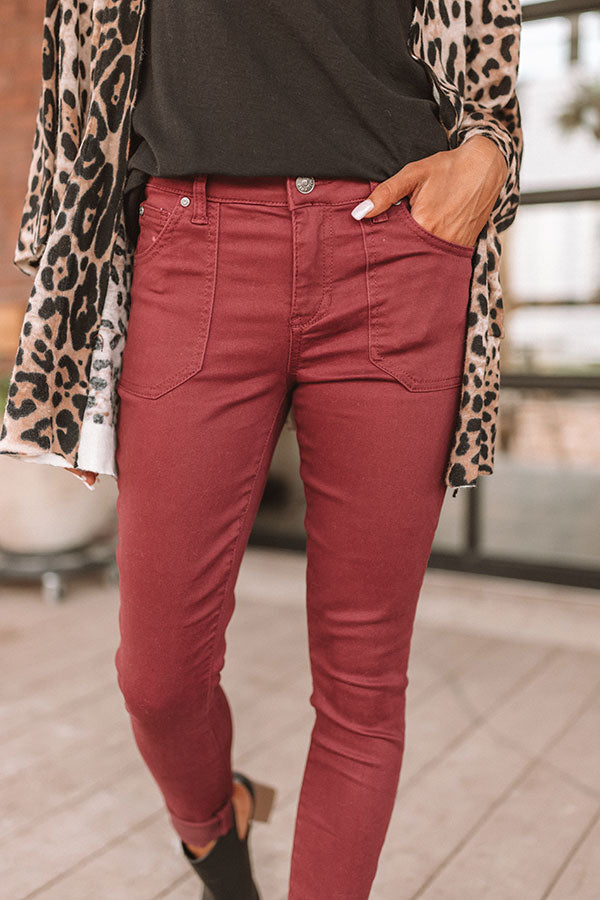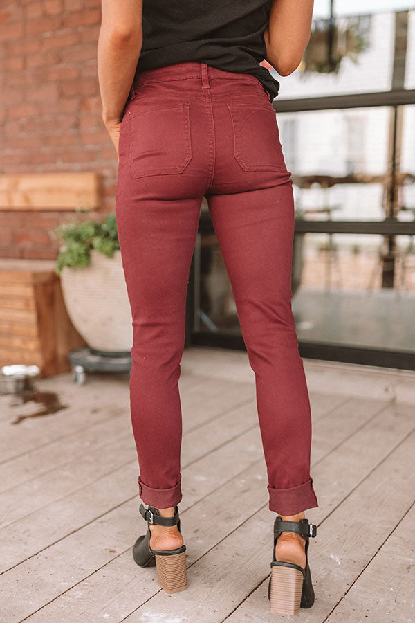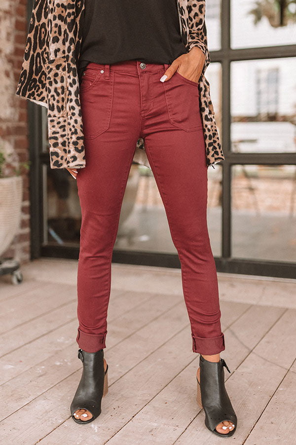 Life is more than just fitting into your jeans, but we believe you will LOVE the feel and look of "The Seraphina" dark red skinnies with their cuffs, midrise fit, ankle length hem, and stretchy form fit! Plus they feature a 5 pocket cut, belt loops, and a hidden zip with a button closure! These edgy bottoms will take you from season to season when you wear with your favorite strappy sandals or open toed heels in the summer and with booties or knee high boots in the fall!