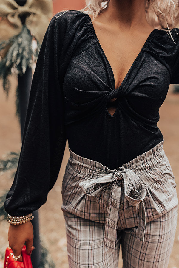 You are sure to receive compliments when you wear our flirty black 'Sheela Bodysuit' featuring ultra lightweight material, a flirty neckline with a twisted bodice, long loose sleeves, and a flattering silhouette that ends in cheeky fit bottoms with a snap closure!