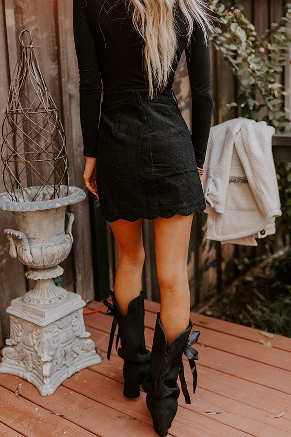The Sienna High Waist Corduroy Mini Skirt in Black