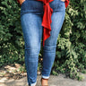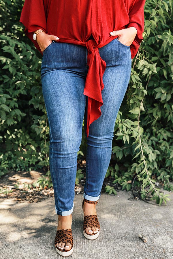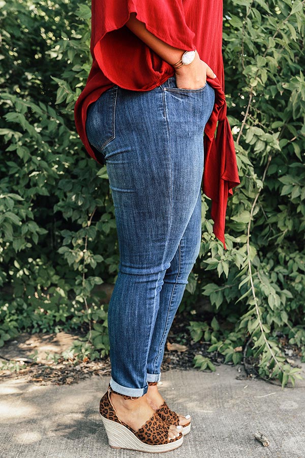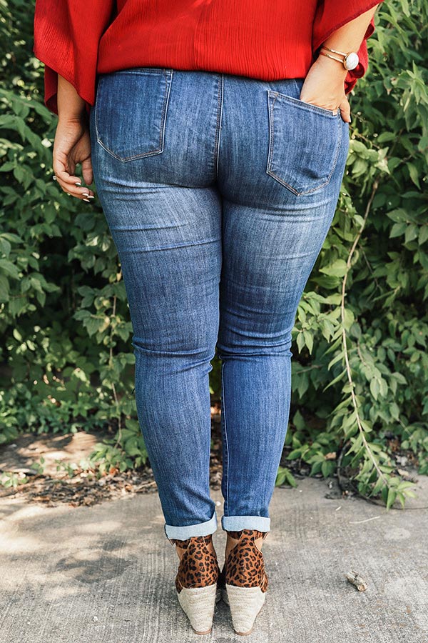 Plus Size - These medium wash skinny jeans have a mid-rise fit, a great stretchy fitted feel, a skinny silhouette with subtle fading & a cuff-able hem.