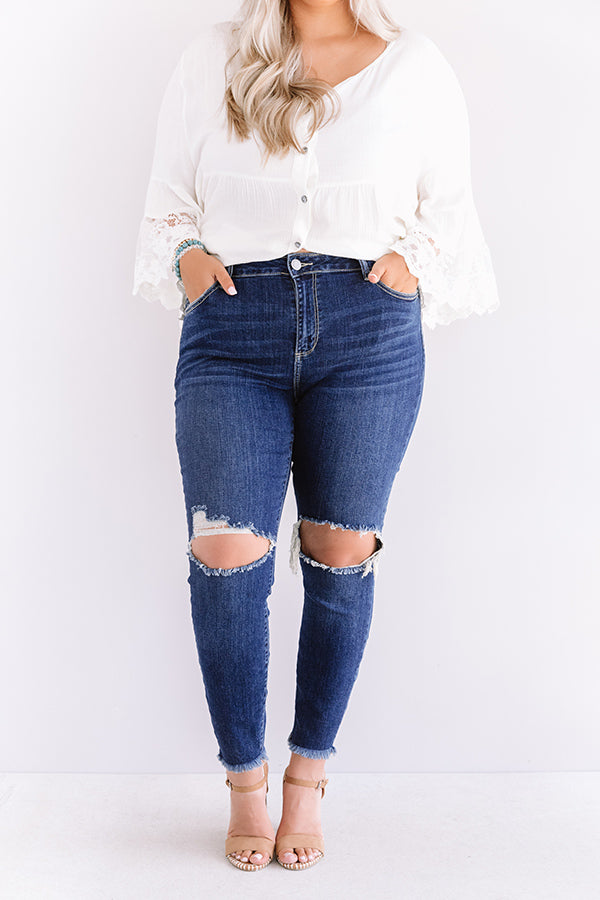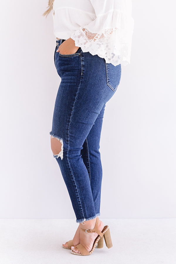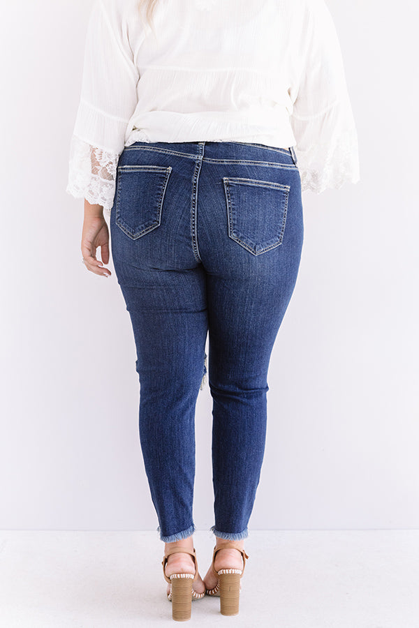 Plus Size - Life is more than just fitting into your jeans, but we believe you will LOVE the look and feel of our "Sorel" skinnies featuring lightweight dark wash denim material with distressed detailing and subtle accent fading, a midrise waistline with belt loops, four pocket cuts, a hidden zip fly with a button closure, and a form fitting silhouette that falls into frayed ankle-length hemlines that can be cuffed! These trendy bottoms will take you from season to season when you wear with your favorite open toed heel, sunnies, and tank top in the summer and with booties, a faux suede hat, and a sweater in the fall!