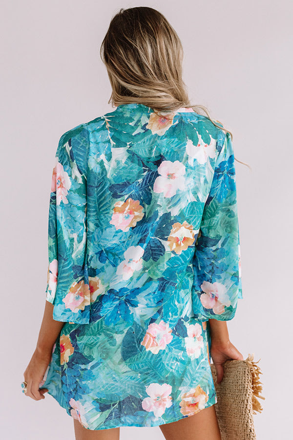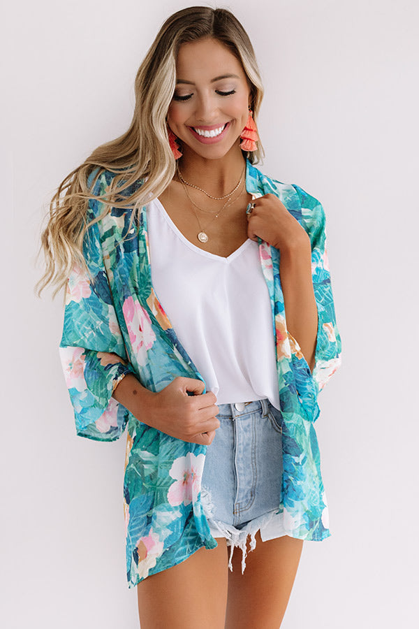 This adorable overlay is "the sweetest thing" with its lightweight breezy material patterned with a green and light pink hued floral print, oversized 3/4-length sleeves, and an ultra relaxed open front silhouette that falls into a straight upper-thigh length hemline! You can layer this versatile piece with just about anything from a basic tank and distressed denim to your fave swimsuit!