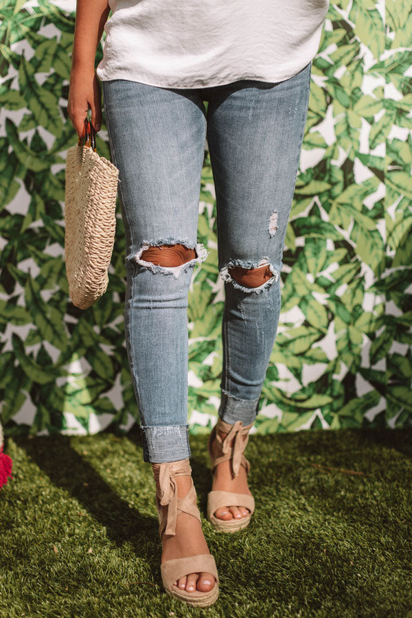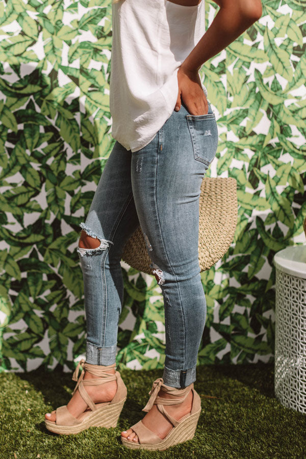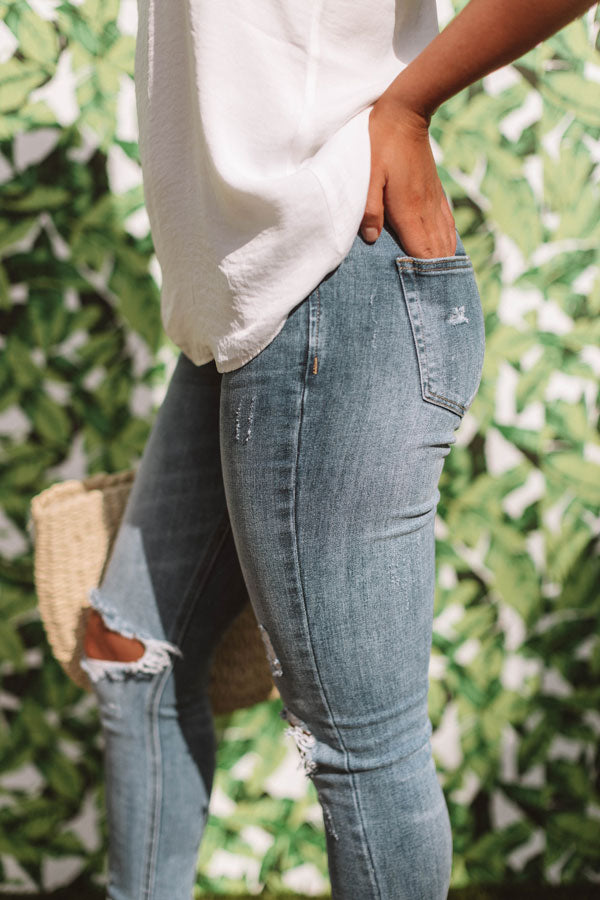 The Talia Midrise Distressed Ankle Skinny in Medium Wash