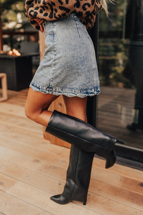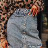 - Elevate your casual wardrobe with this delightful denim mini skirt! With its scalloped trim and buttoned front, it adds a charming touch of style to any outfit. Pair it with a tucked-in sweater and your favorite boots for a chic look that's perfect for everyday adventures.