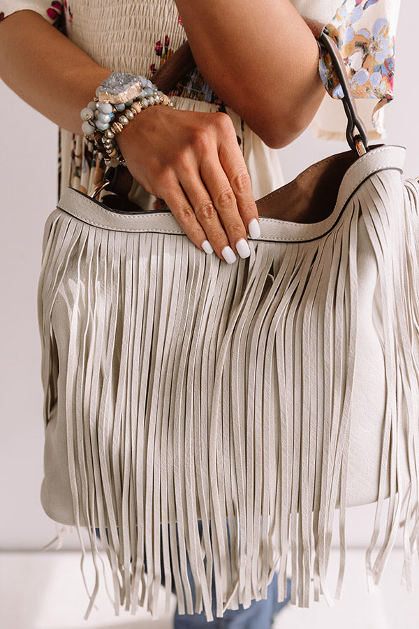 The Time Is Now Faux Leather Fringe Tote in Grey