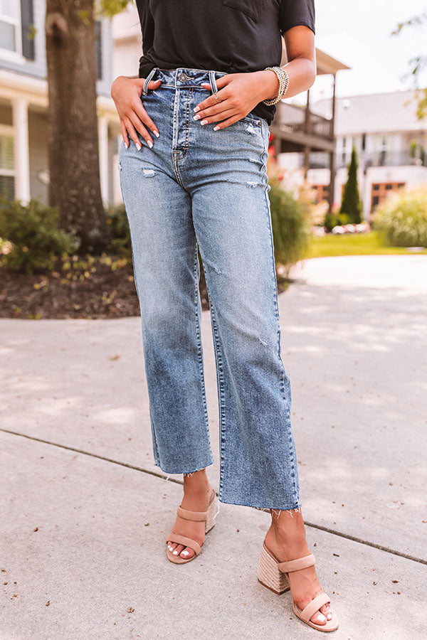 Life is more than just fitting into your jeans, but we believe you will LOVE the feel and look of "The Tracey" jeans with their lightweight medium wash denim material with subtle distressed detailing and accent fading, a high waist fit with belt loops, classic four pocket cuts, a hidden zip fly with a button closure, and a relaxed figure flattering silhouette that falls into straight raw-cut ankle hems! These trendy bottoms will take your from season to season when you wear with your favorite open toed heel and tank top in the summer and with booties and a sweater in the fall!