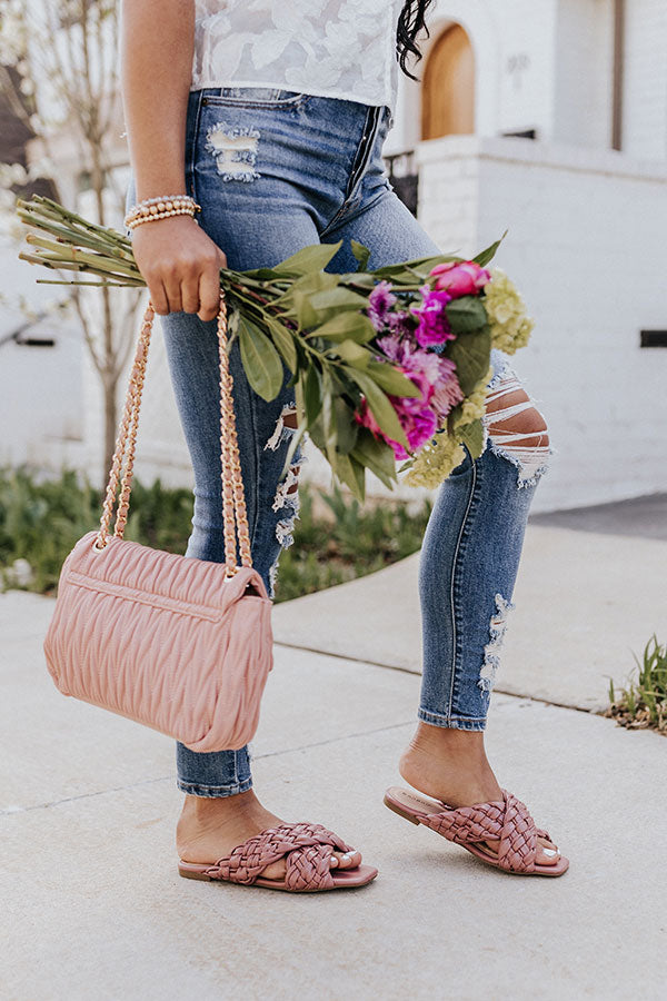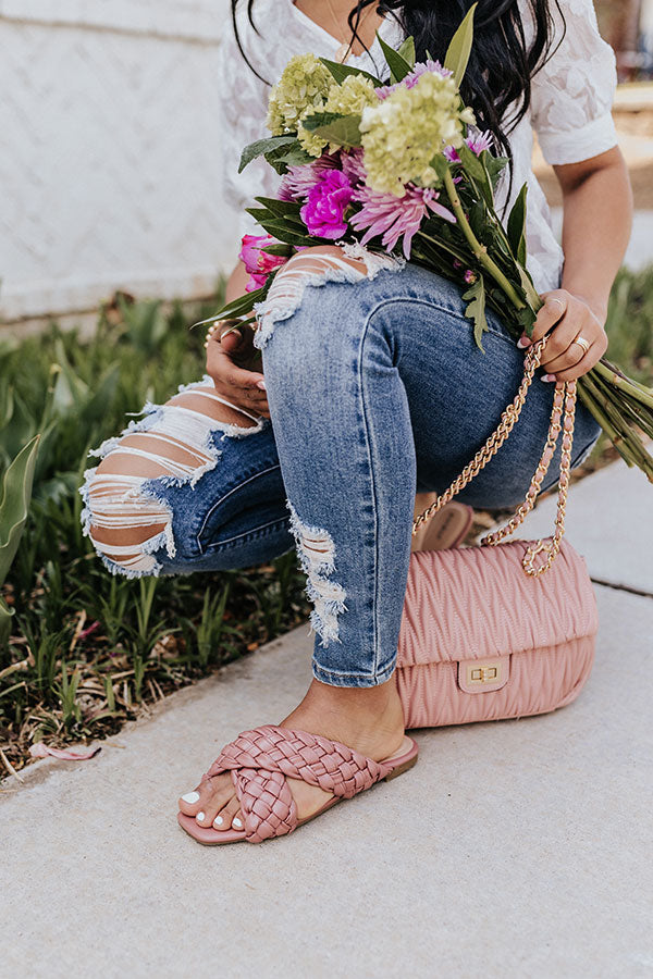 Slide into summer in our timeless vineyard grape hued 'Trudie' sandal featuring two wide braided and crossed over-the-foot straps, a square toe, and a lightweight slip-on silhouette! This adorable sandal runs more true to size.