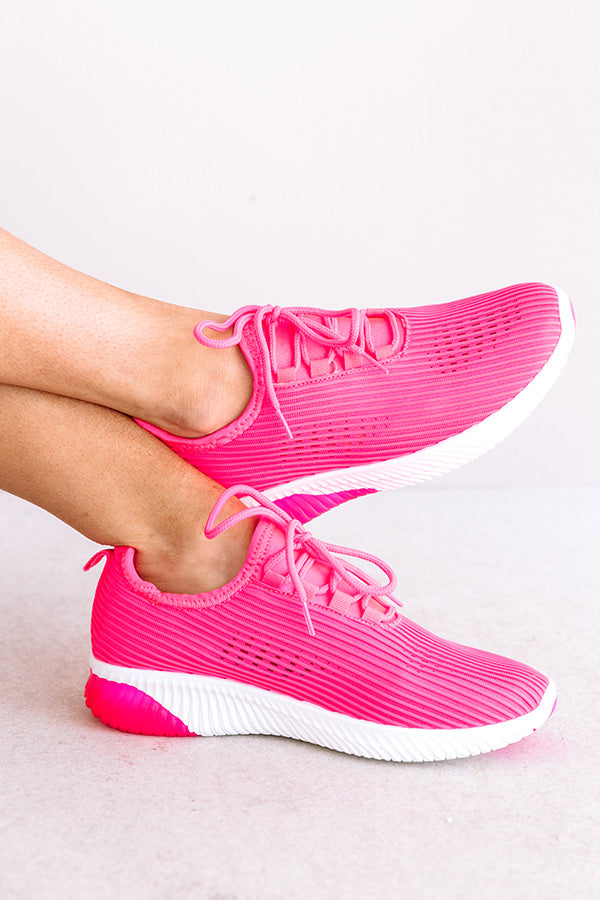 Look stylish everyday in our adorable hot pink "Tuesday Sneaker" featuring lightweight material with ribbed texturing and meshed detailing, rounded closed toes, flat soles with a slightly lifted heel, and a lace-up slip on silhouette!