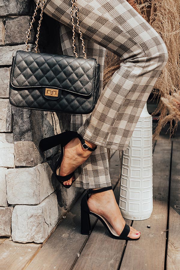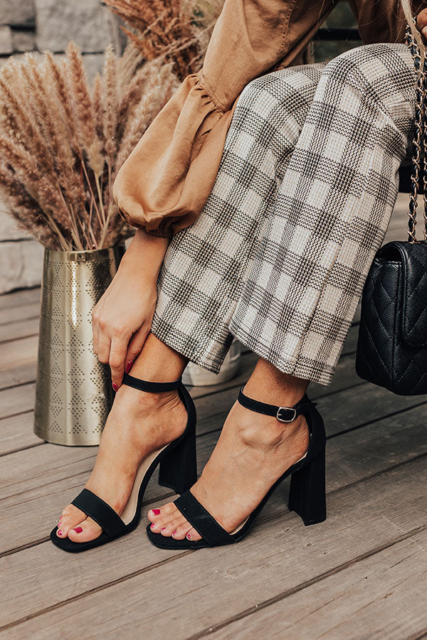 Keep your heels and standards high with these chic black 'Vivi' heel featuring faux suede material, a 4-inch block heel, a square open toe with a single over-the-foot strap, and a closed heel with a buckled ankle strap! This heel runs more true to size.