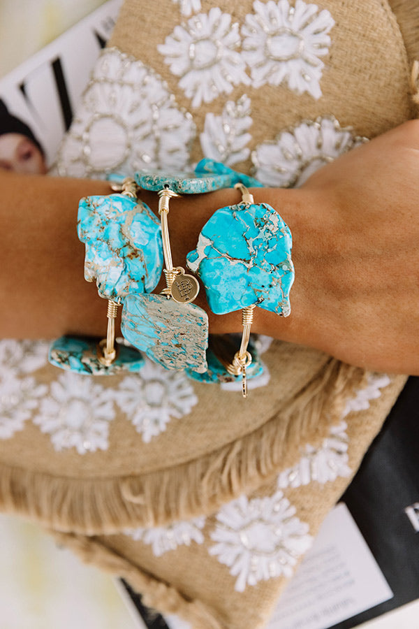 The "Wayne" bracelet features a gold plated copper wire-wrapped bangle adorned with three natural stones!