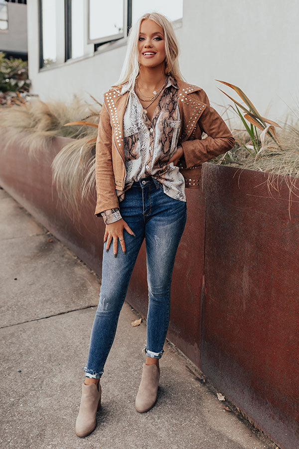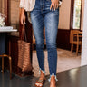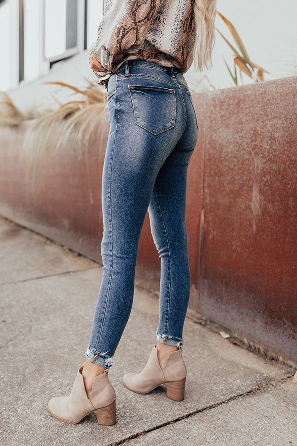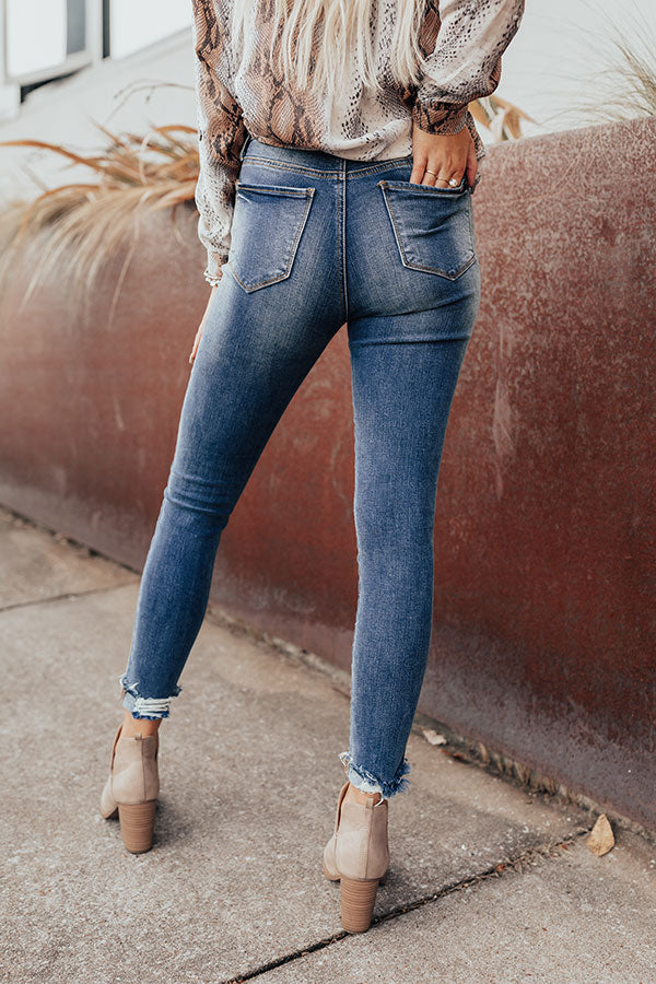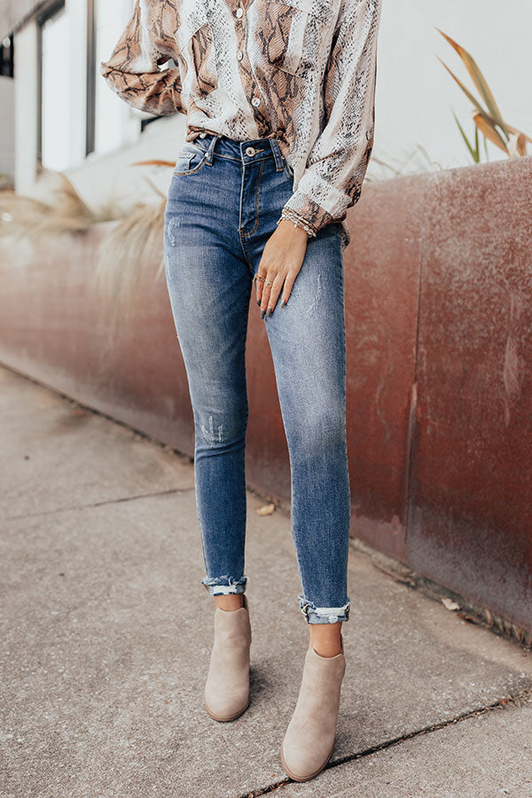 Life is more than just fitting into your jeans, but we believe you will LOVE the look and feel of our adorable 'Wells' skinnies featuring lightweight medium wash denim material with subtle distressed detailing and accent fading, four pocket cuts, a hidden zip fly with a button closure, a midrise waistline with belt loops, and a form fitting silhouette that falls into frayed ankle-length hemlines that can be cuffed!