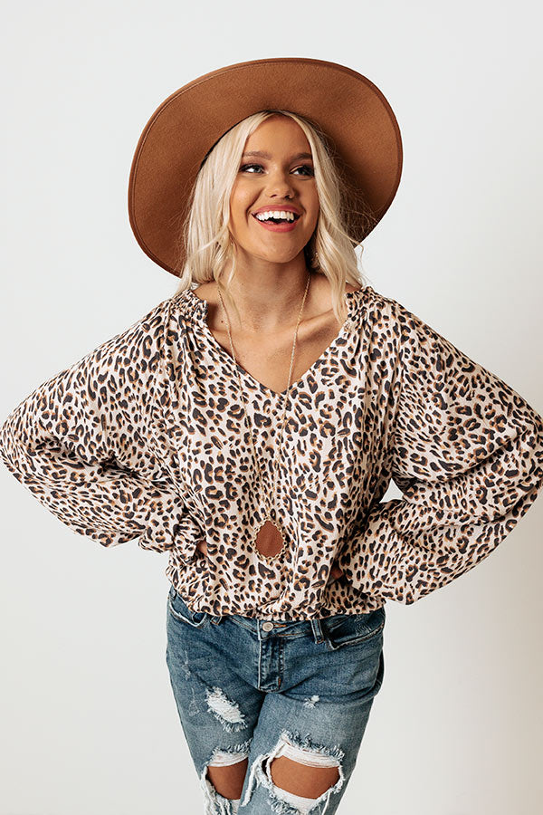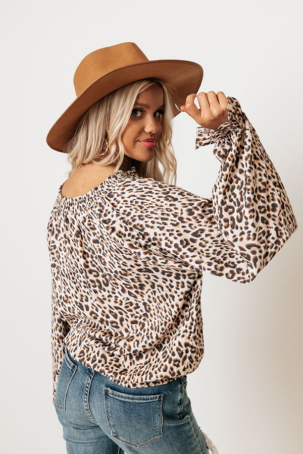 Welcome fall effortlessly in our charming 'Winette' top featuring lightweight material patterned with a small brown and black leopard print, a v-cut neckline with a smocked back, long bishop sleeves with flared cuffs, and a relaxed silhouette that falls into a straight hemline!