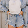 Welcome those warmer months in effortless style with our trendy 'Winnow' shorts featuring lightweight light wash denim material with accent fading and distressed detailing, a high waistline with belt loops, a hidden zip fly with a button closure, a classic four-pocket cut, and a relaxed silhouette that ends in frayed upper-thigh length hemlines!