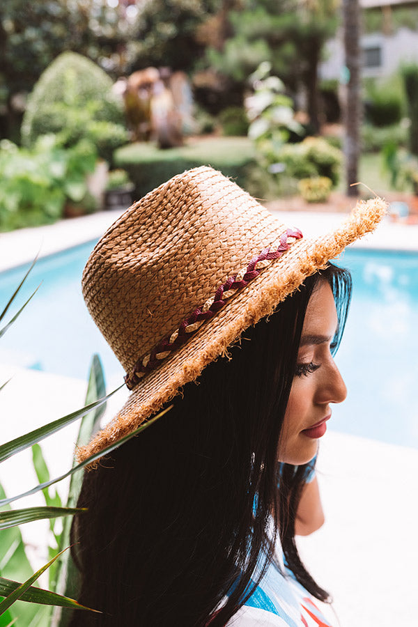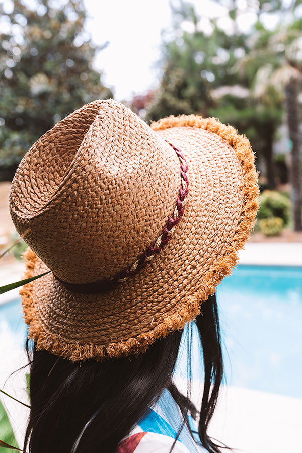 Stay shady in style by accessorizing with our adorable "Yacht Spot" hat featuring lightweight woven raffia material, a wide brim with fringe trim detailing, and a braided accent band!