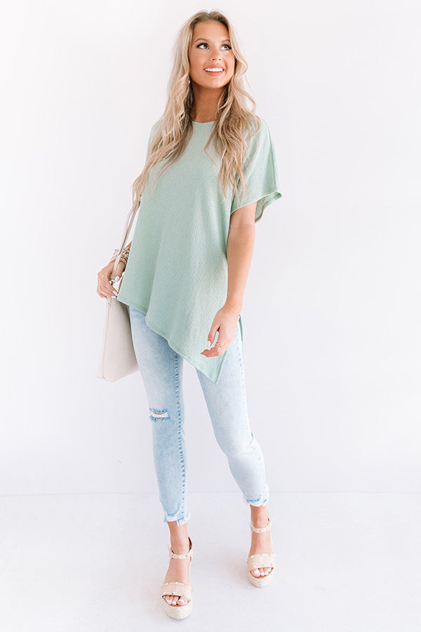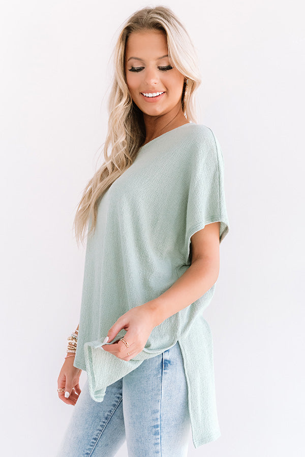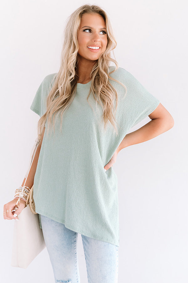 Dance to the tune of your own "theme song" in this casual cute pear colored shift tee featuring soft lightweight material, a wide rounded neckline, short loose sleeves, and an ultra relaxed silhouette that falls into a high/low tunic length hemline with accent side slits! This versatile piece can be styled a variety of ways, like with some light wash skinnies and a neutral wedge and tote, or it can be worn front tucked into some white shorts with our "Dreams Of Tomorrow Wool Hat in Beige," and "The Ellie Snake Print Sneaker in Ivory!" Measurements