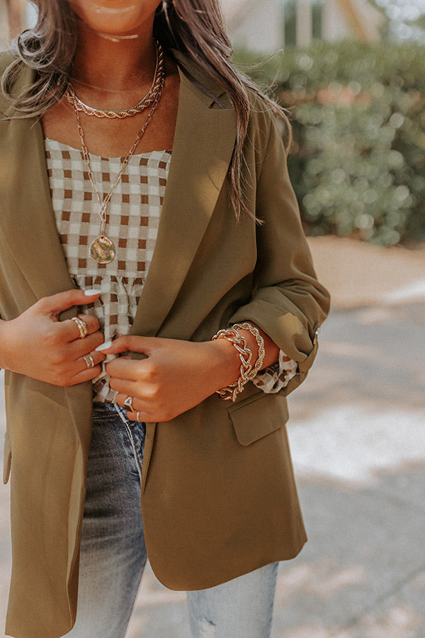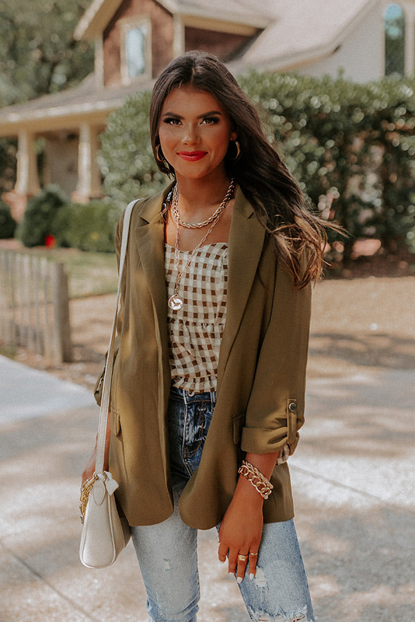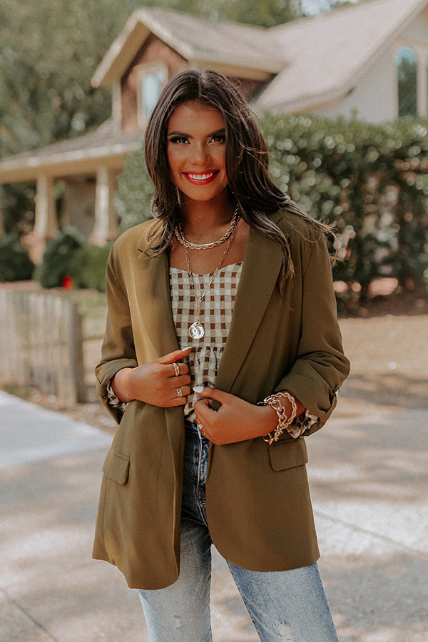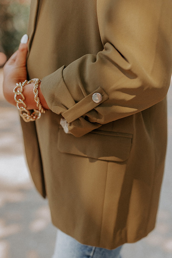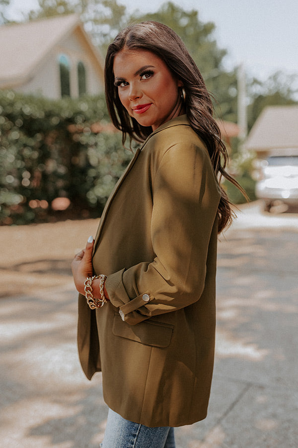 Arrive looking like the girl boss you are in our chic olive hued 'These Are The Days Blazer' featuring lightweight material, long loose sleeves with roll-tab cuffs, a collared neckline, two low accent pockets, and a flattering silhouette that ends in a straight hemline!