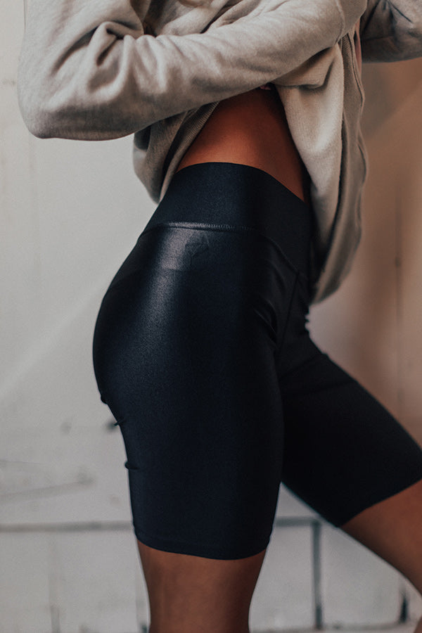 Think Happy Thoughts High Waist Biker Shorts in Black