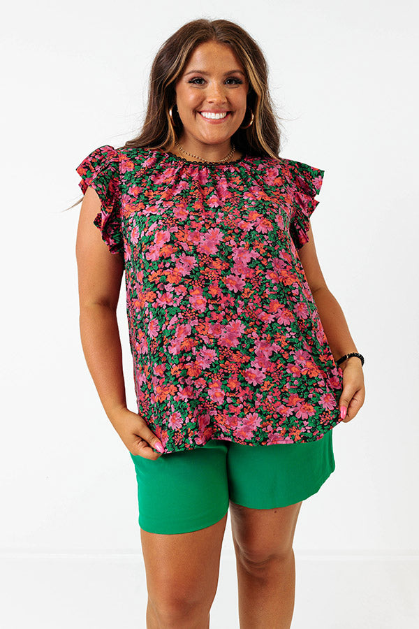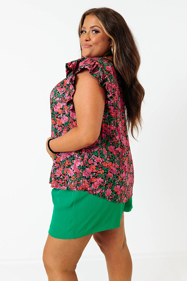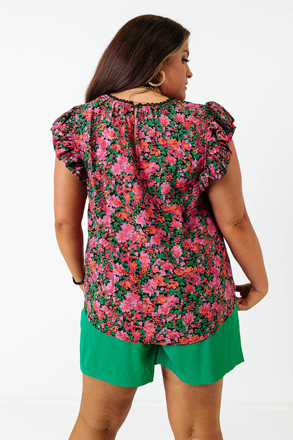 We have no doubt you will look so pretty in this darling plus size top featuring lightweight material patterned with a pink, red, and green floral print, a rounded neckline, ruffled cap sleeves, a keyhole accented upper back with a button closure, and a relaxed silhouette that falls into a straight hemline!