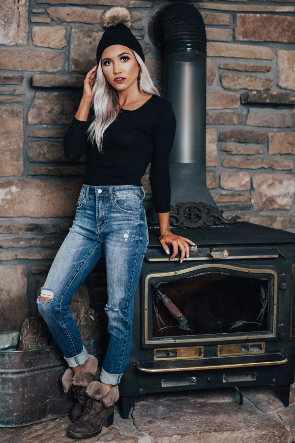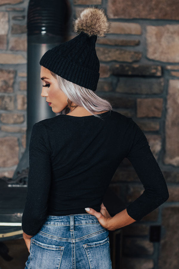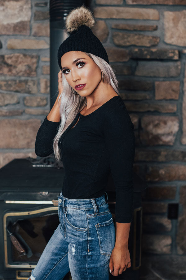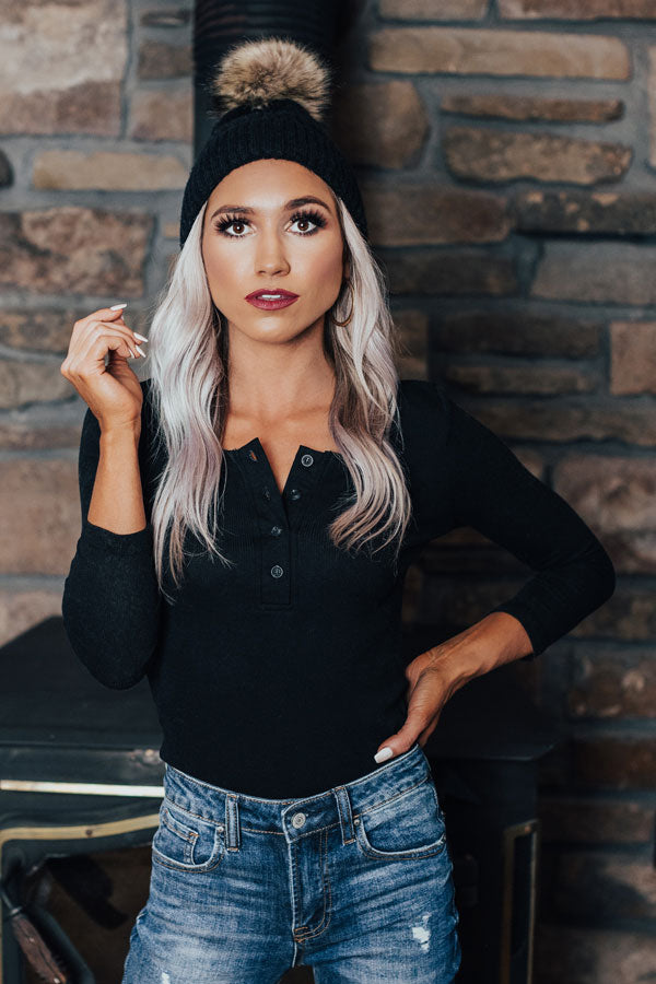 Everyone will undoubtedly be "thinking of you" when you wear this adorable black bodysuit featuring soft lightweight material with ribbed texturing, a button up bodice with a scooped neckline, long sleeves, and a form fitting silhouette that falls into a cheeky fit with two button snaps! You can style this piece under any type of bottoms and wear any type of outerwear with it for a variety of looks that will carry you from season to season! Measurements