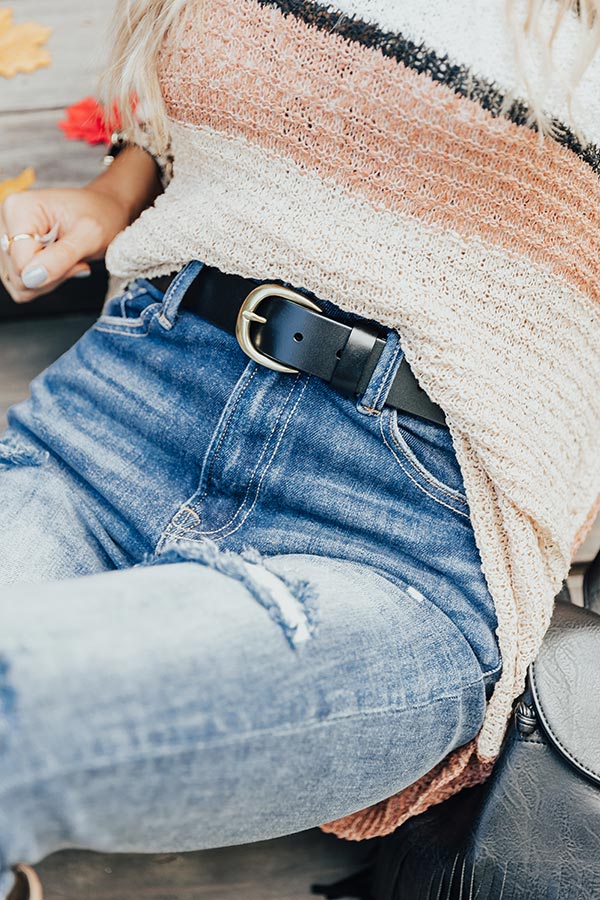 Add a thoughtful touch to any look with this classic belt featuring a black strap with a simple gold buckle! Belt Range: 30in-37.5in