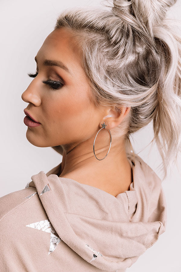 Shine bright in our adorable silver "Throwback Moment" earrings featuring small star studs and large dainty closed hoops!