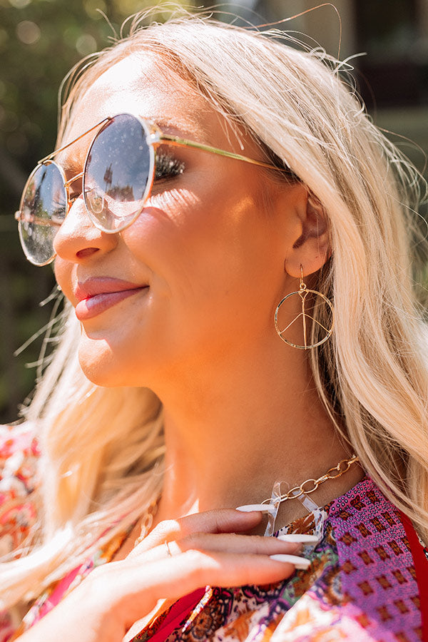 A boho necessity, our adorable 'Ticket To Love Earrings' feature dangling gold wire peace signs!