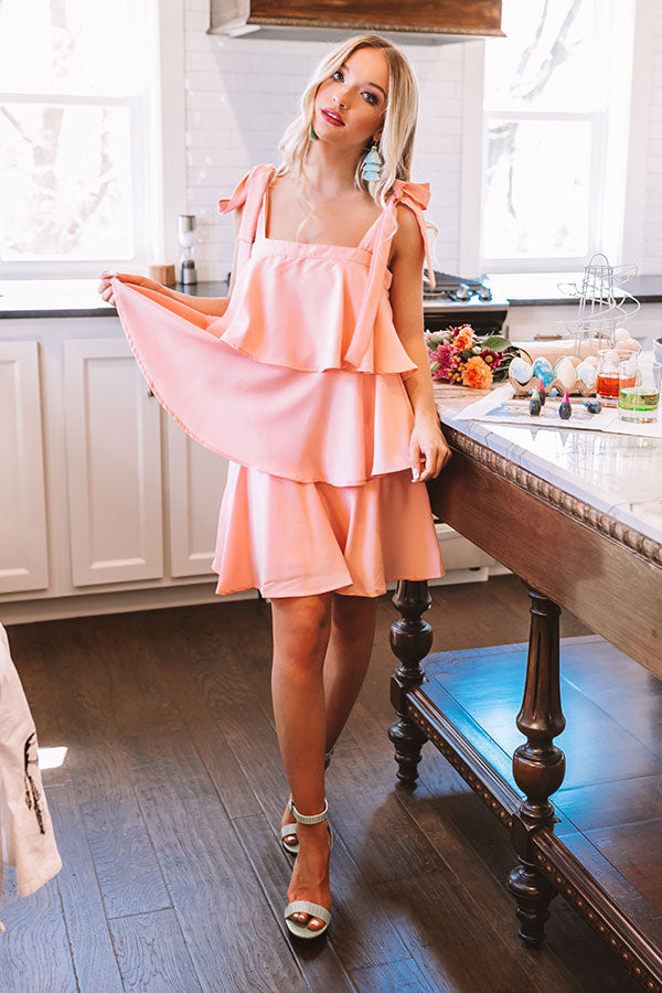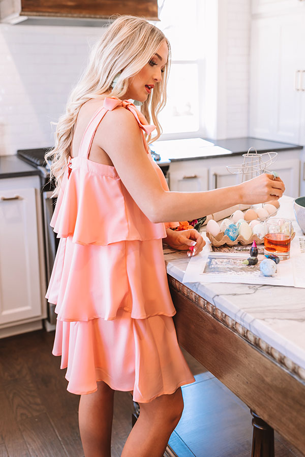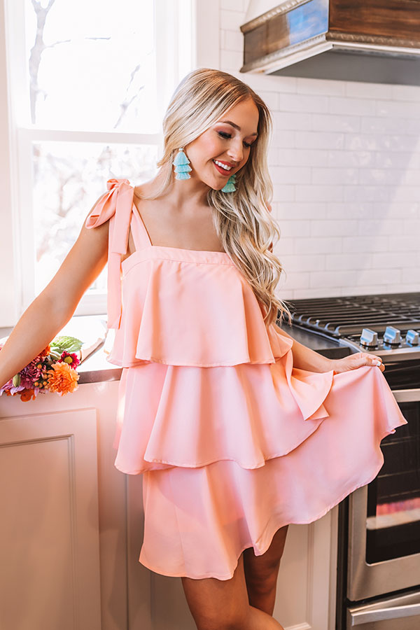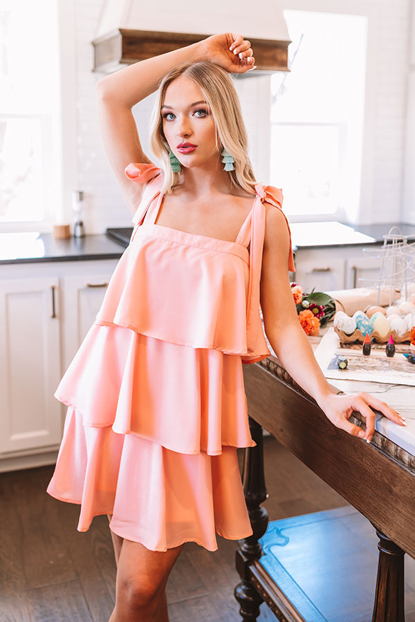 This adorable peach colored shift dress will have you saying "tier comes the sun" with its lightweight breezy material, a straight neckline with 1-inch tied shoulder straps, a v-cutout back with a button closure, and an ultra relaxed three tiered silhouette that falls into an uneven mid-thigh length hemline! You can style this sweetie with a blue accent heel and statement earring, or it can be worn with "The Seraphina Faux Leather Wedge in Grey" and our "All Caught Up Headband in Grey" for a variety of gorgeous Easter looks that you will want to wear time and time again!