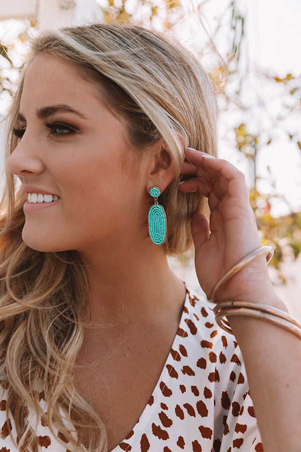 You will be a tiki hut queen when you accessorize with our adorable ocean wave colored "Tiki Punch" statement earrings featuring beaded circle studs and dangling oval pendants!
