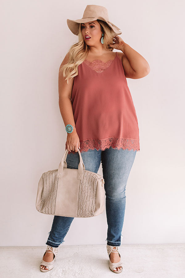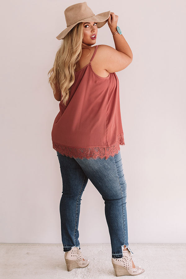 Time For Romance Lace Trim Tank in Dark Blush Curves