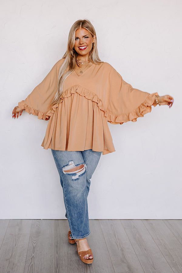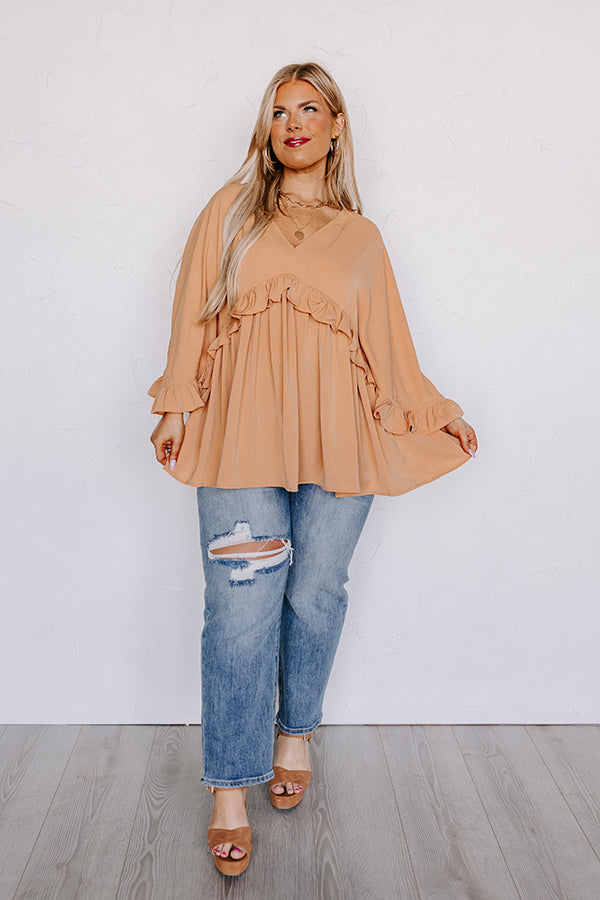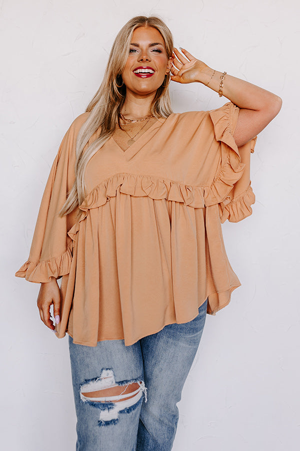 Time To Dance Ruffle Top In Camel Curves