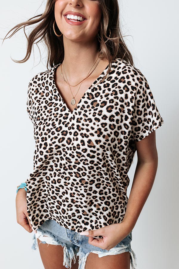 You will be a timeless beauty when you wear this cream colored shift top featuring lightweight material patterned with a bold black and brown leopard print, v-cut neckline, short loose sleeves, and a relaxed bodice that falls into an uneven hemline with side splits!