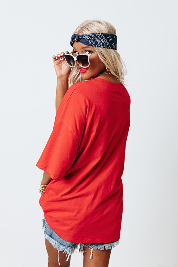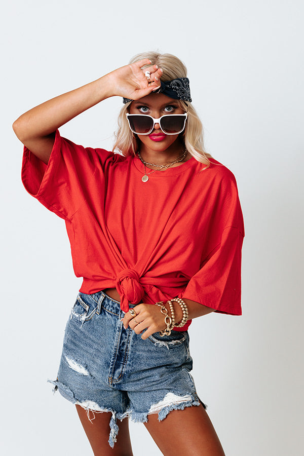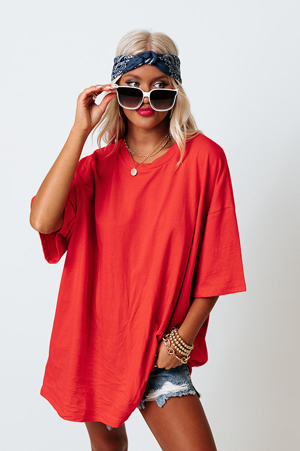 This is a timely reminder to add this casual red shift tee to your cart! It features soft and lightweight material, a rounded neckline, short loose sleeves, and an oversized and slouched silhouette that ends in a straight tunic-length hemline! Measurements