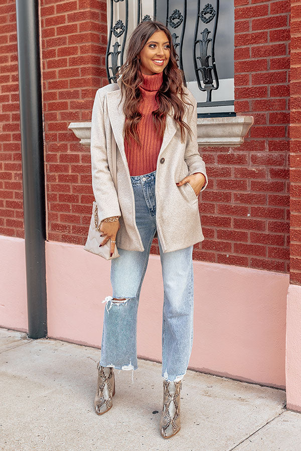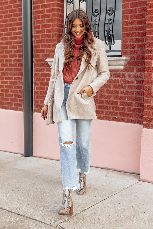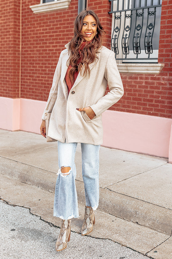 Drape yourself in style by layering up with our simple but sophisticated stone colored 'Times Square Views Coat' featuring lightweight but warm material, long loose sleeves, a collared neckline, low accent side pockets, a single button closure, and a flattering open front silhouette that falls into a straight mid-thigh length hemline!