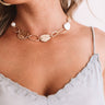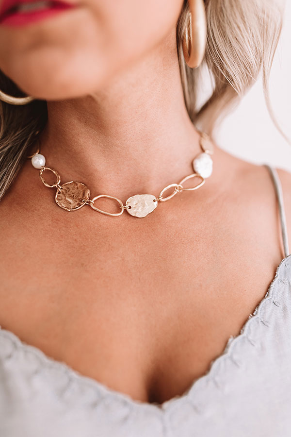 You will love to have this clasp closure necklace draped around your neck with its open oval, pearl, and golden pieces!