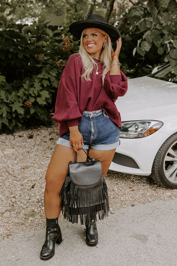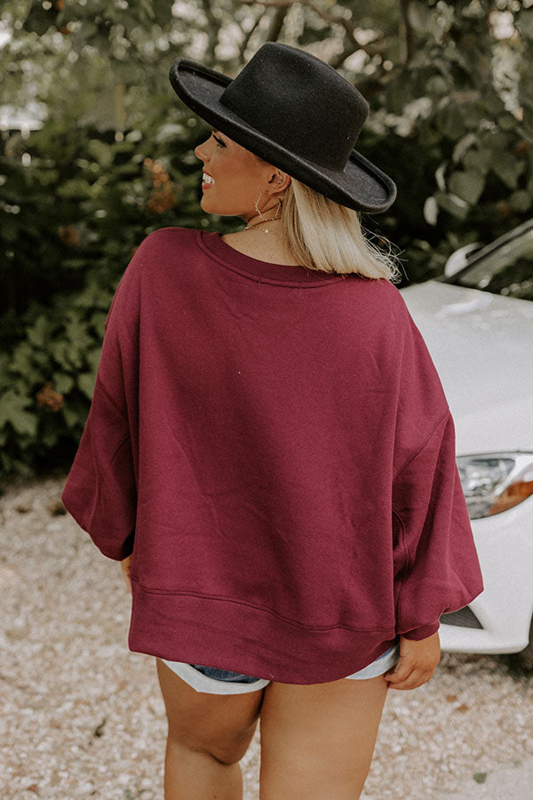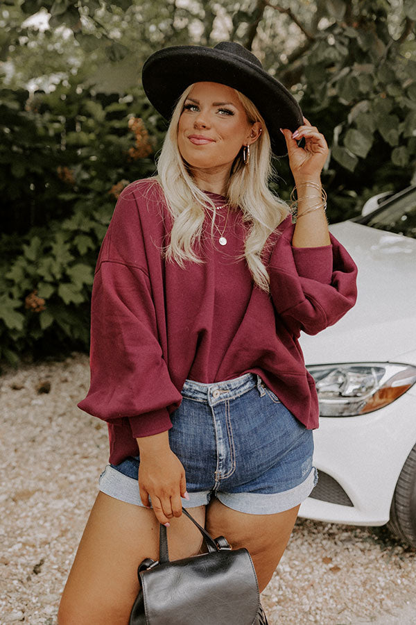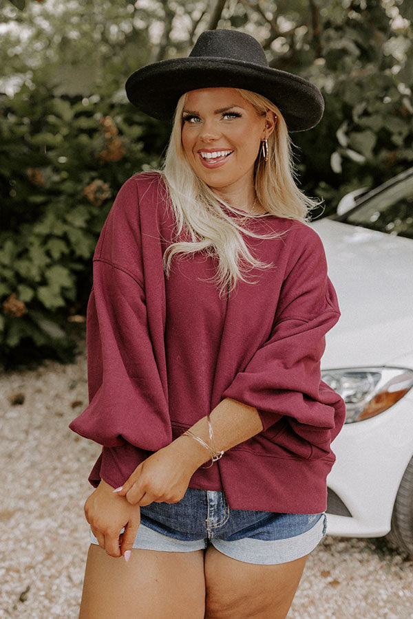 When headed to the mountains there is no better piece to keep you warm than this adorable maroon colored plus size sweatshirt featuring soft lightweight material, a high rounded neckline, long bubble sleeves with fitted cuffs, and a relaxed silhouette that falls into a straight hemline!
