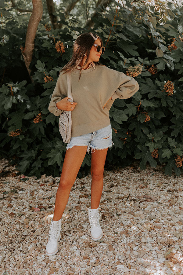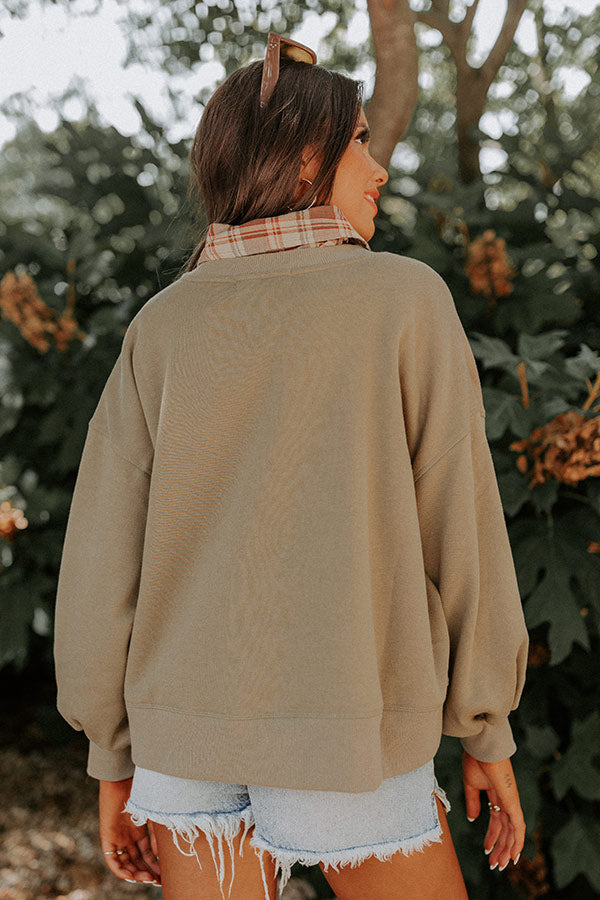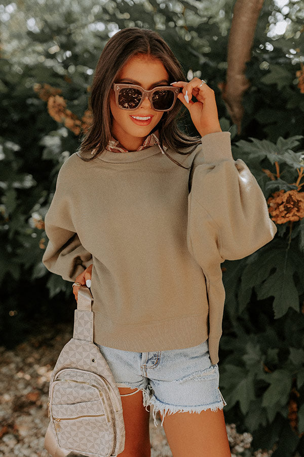 When headed to the mountains there is no better piece to keep you warm than this adorable martini olive colored sweatshirt featuring soft lightweight material, a high rounded neckline, long bubble sleeves with fitted cuffs, and a relaxed silhouette that falls into a straight hemline!