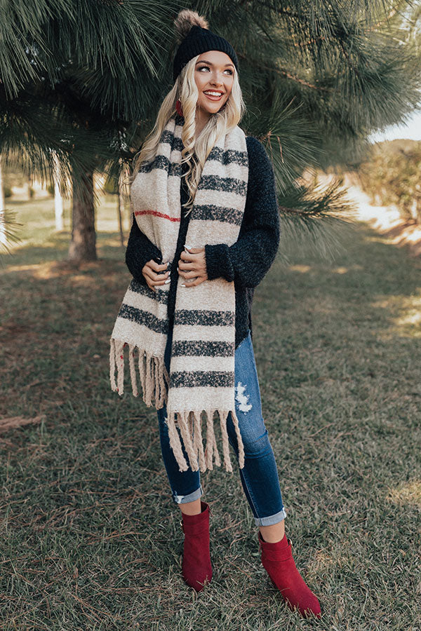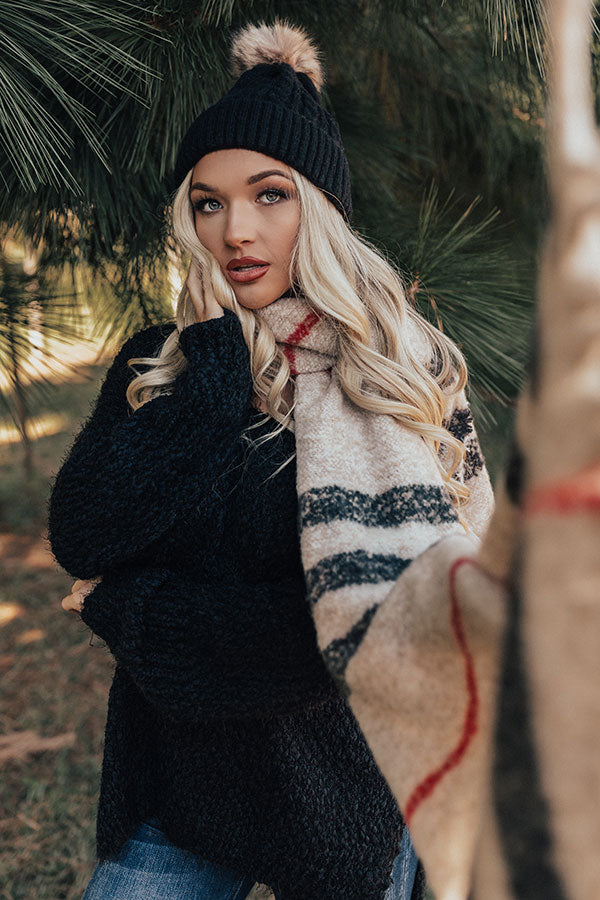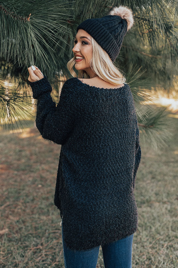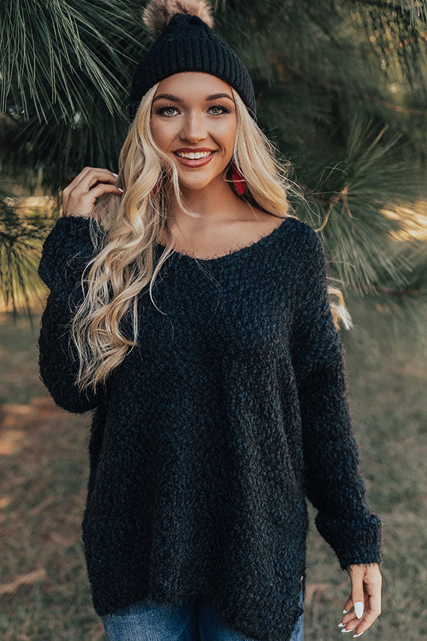 You will feel nothing but "toasty vibes" when wearing this charming black sweater featuring soft lightweight tight knit material with subtle texturing, a wide v-cut neckline, long loose sleeves with fitted cuffs, and an ultra relaxed silhouette that falls into a rounded hemline with side slits! We have styled this basic fall essential with some distressed ankle skinnies, a neutral plaid scarf, a beanie, and red booties, but you can also wear it under our "Cabin And Cocktails Sherpa Lined Vest" with our "Weekend In NYC Ribbed Velour Skirt in Ecru Olive," black over the knee boots, and our "Glamour Girl Quilted Tote in Maple!" Measurements
