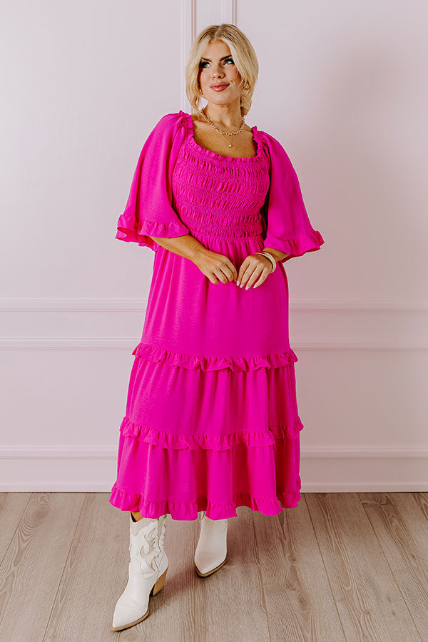 Toes In The Sand Smocked Midi in Hot Pink Curves