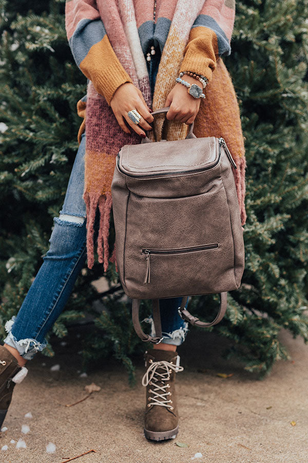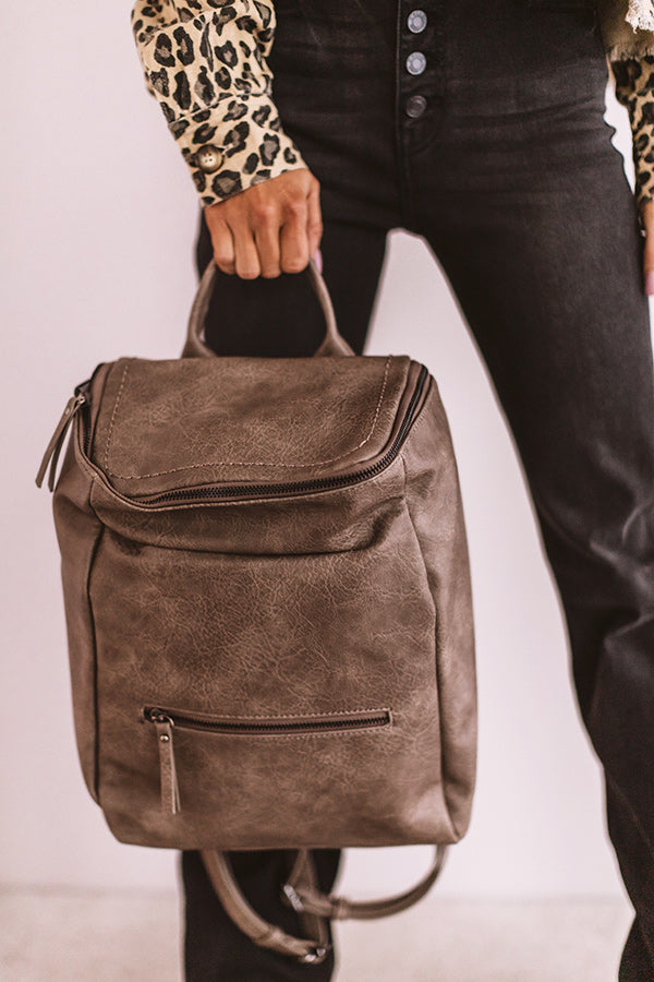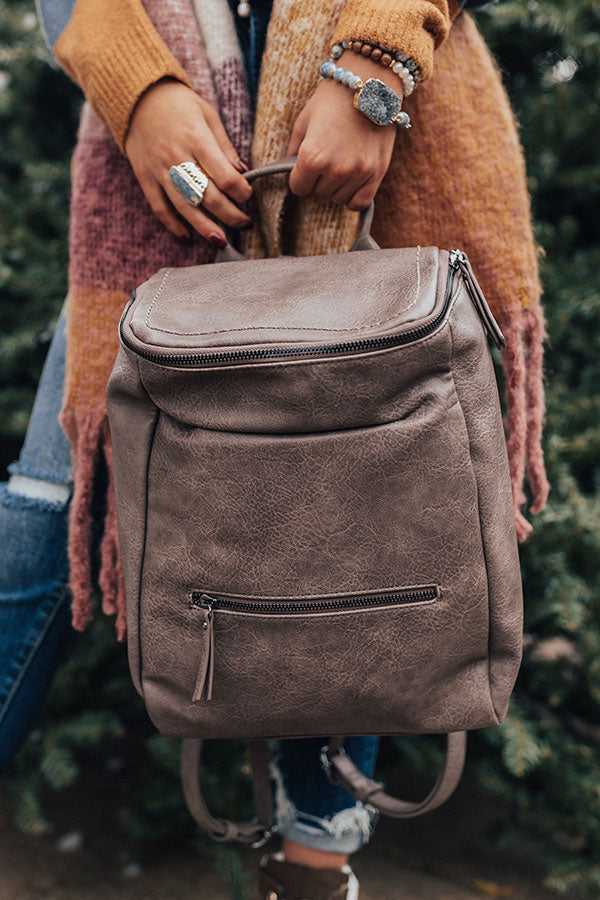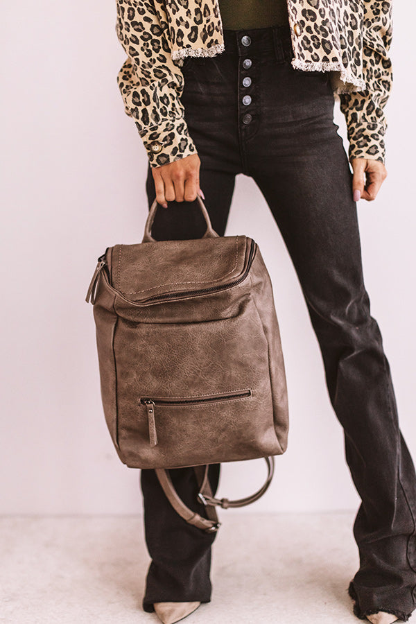Everyone will think you are just "too cool" when you accessorize with this dark neutral hued backpack featuring sleek faux leather material with a worn texture, two adjustable shoulder straps and one tote handle, and a spacious pouch with a tassel zip closure and additional inside pockets!