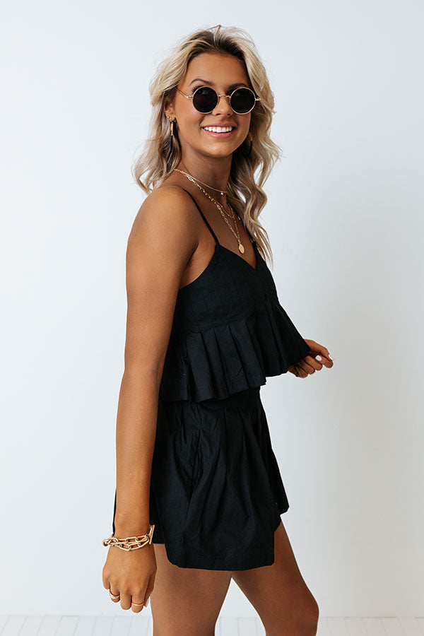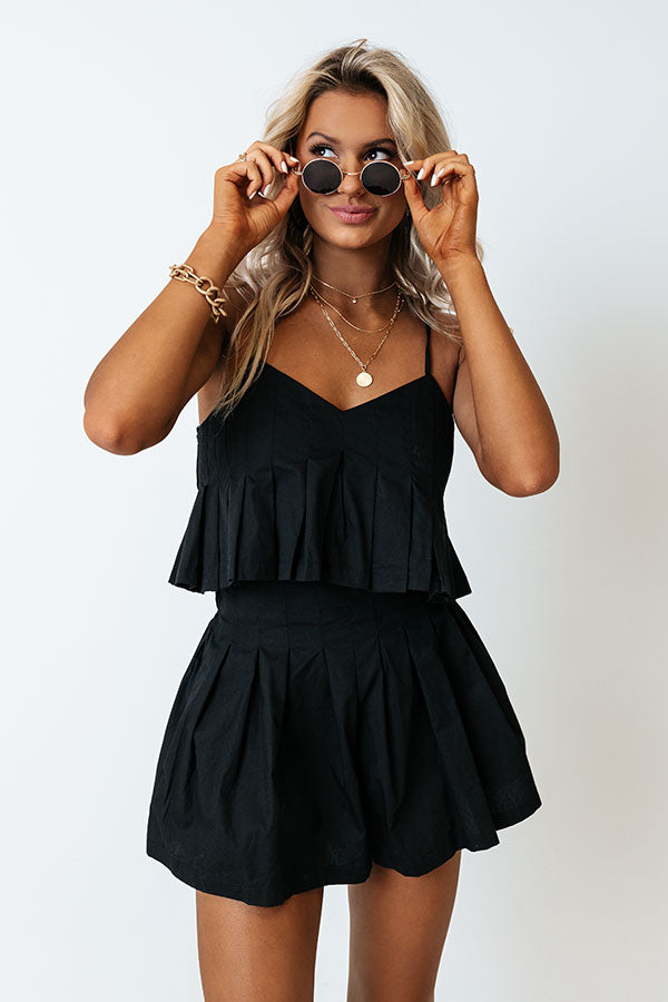 We have no doubt you will fall in love with our flirty black 'Total Appeal' top featuring lightweight material, a v-cut neckline, spaghetti straps with a tie back closure, and a pleated peplum silhouette that ends in a straight cropped hemline! on products