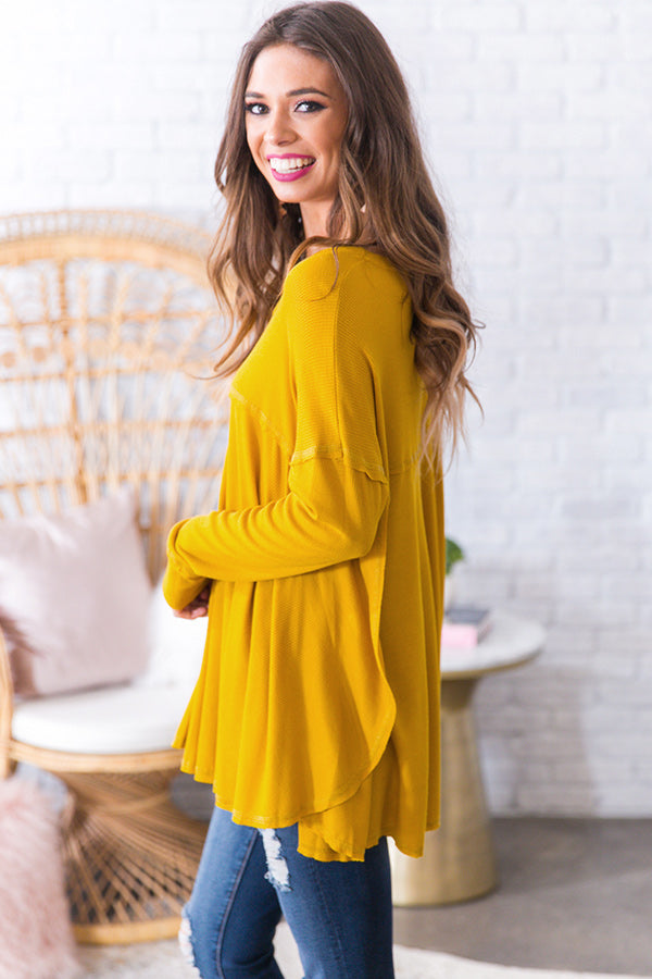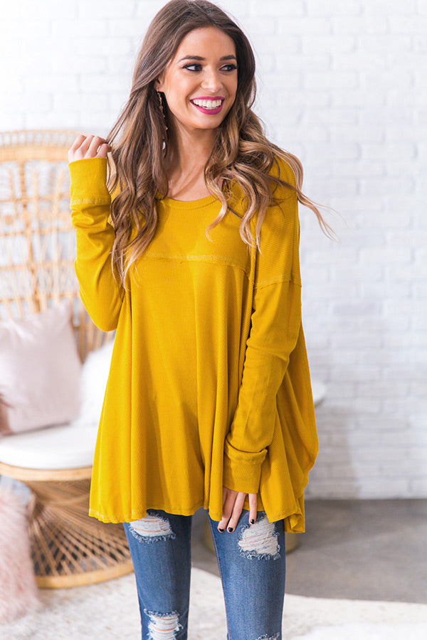 Look like a total babe in this cozy Spring thermal! This lightweight closet essential has a round neckline, long sleeves & a relaxed swing bodice with split sides. Pair with your favorite distressed denim for a stylishly simple look that's casual, cute & comfy!
