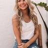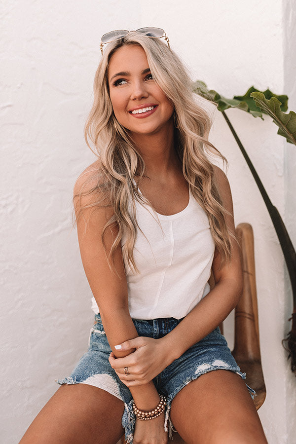 We have no doubt this basic white shift tank will be a total hit with its lightweight material, scooped neckline, wide sleeveless shoulders, two vertical accent seams down the back, and a slouched silhouette that ends in a rounded hemline!