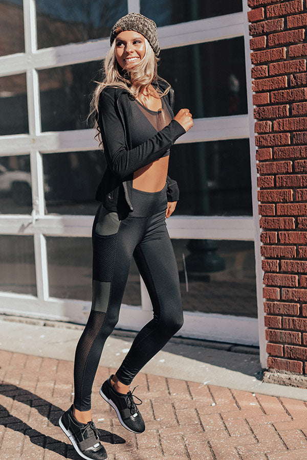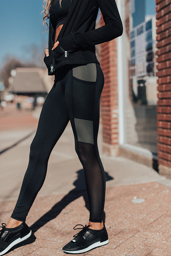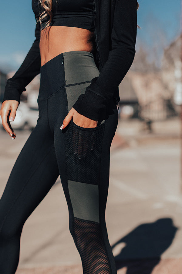 You are sure to be a "total knockout" when you wear these adorable and sporty active leggings featuring soft stretchy material with a figure hugging fit, light grey and mesh accent panels, a high elastic waistband, hidden side phone pockets, and a sleek silhouette that falls into straight ankle length hems! This adorable athleisure piece styles perfectly with a variety of sports bras or tank tops and trendy sneakers for the ultimate workout set! Measurements