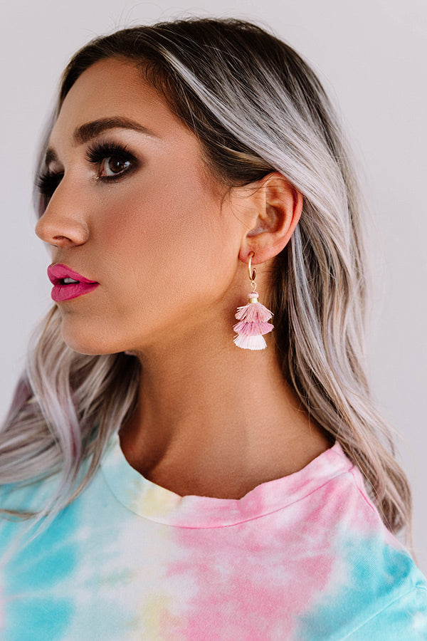 There will be no "toss up" between what earrings to wear when you have these cuties in your jewelry box featuring dangling tiered blush hued tassels!