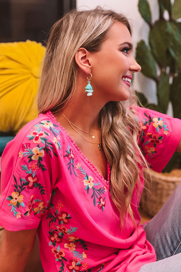 There will be no "toss up" between what earrings to wear when you have these cuties in your jewelry box featuring dangling tiered turquoise hued tassels!