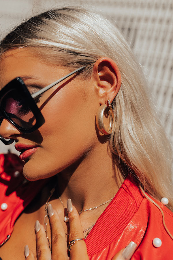 There is no better piece of jewelry to accessorize with everyday than our pretty 'Totally Buggin'' earrings featuring thick gold hoops!