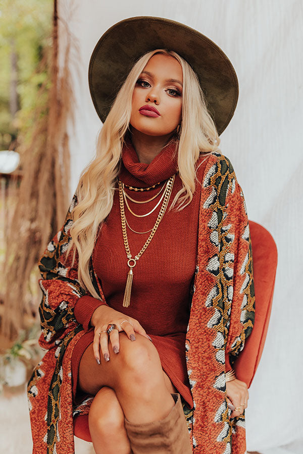 We have no doubt you will be "totally obsessed" with this layered gold necklace featuring three snake chains, a large link chain, and a long chain with an oversized tassel accent!