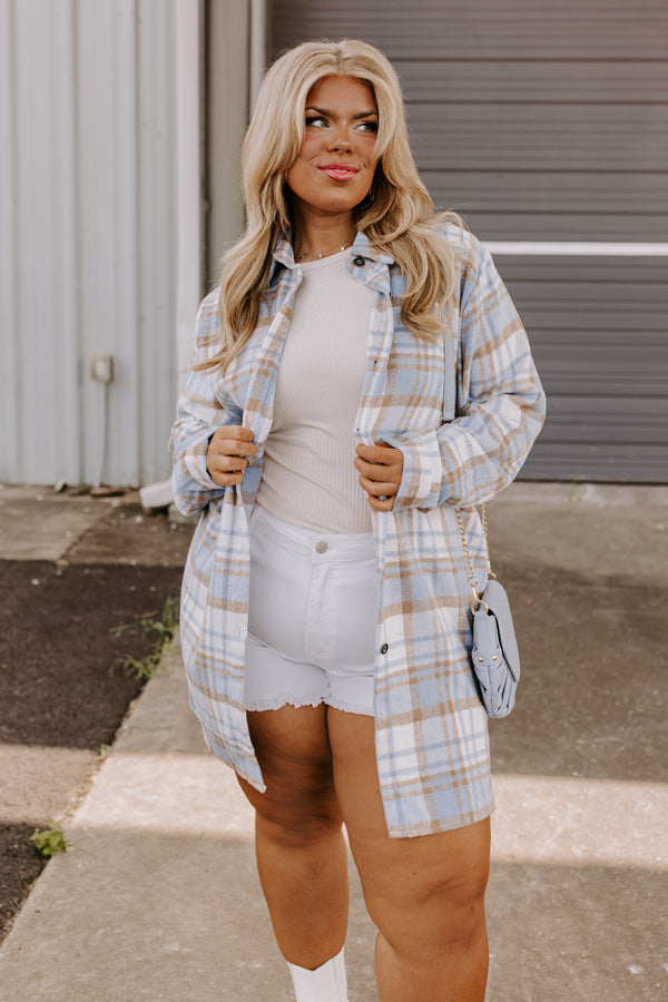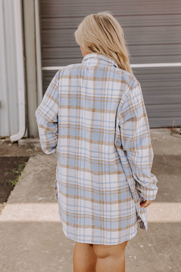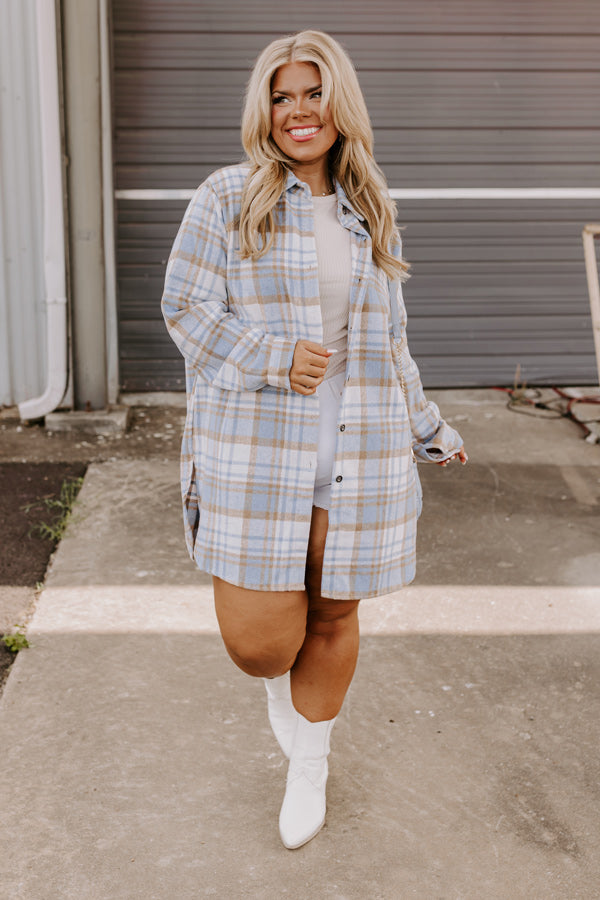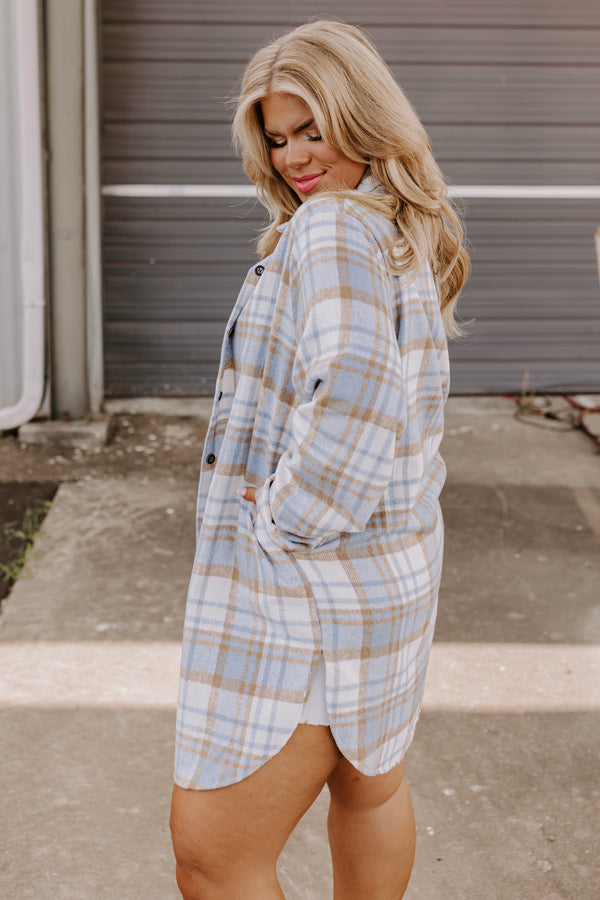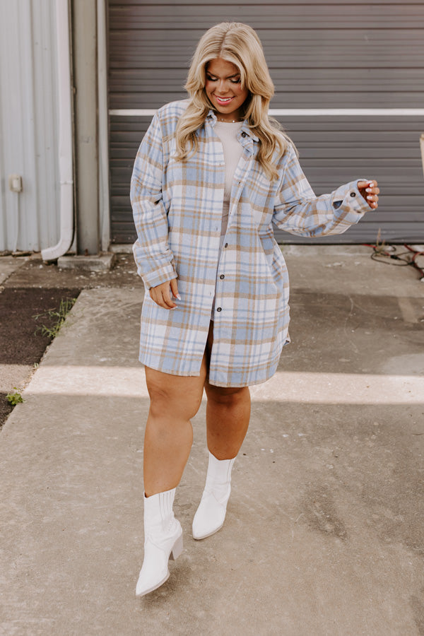 Touch Of Fall Plaid Tunic Dress In Sky Blue Curves