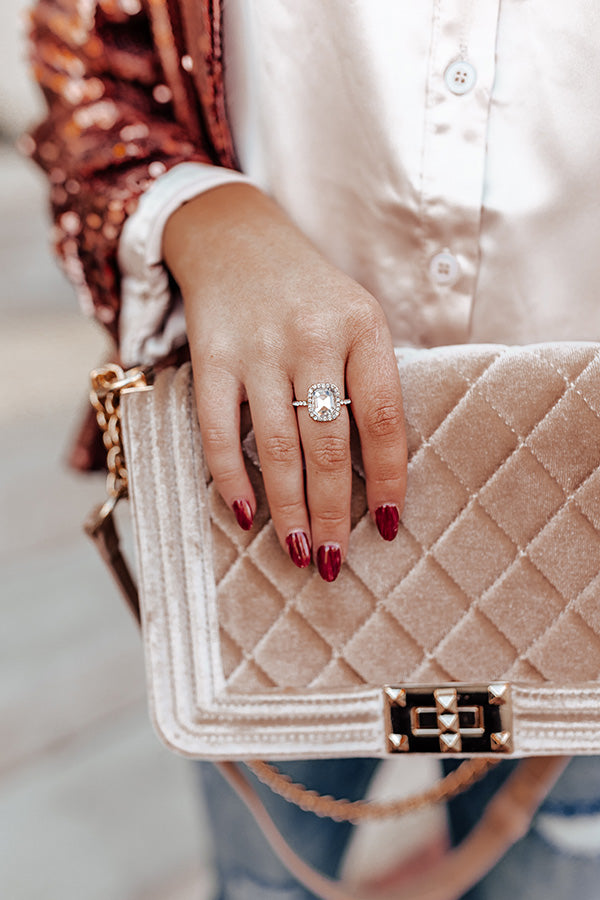Make a bold statement with our stunning 'Tour The City Ring' featuring a thin rhinestone band with a large rectangular gold stone surrounded by dainty shimmering rhinestones! This ring can comfortable fit a 6.5 size.